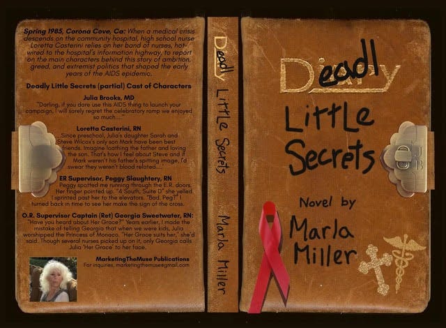 From that era I wrote ‘Deadly Little Secrets’ a novel set in 1985, weeks before Rock Hudson’s announcement put this plague in the world spotlight. ‘Deadly Little Secrets,’ narrated by a RN educator, is a medical suspense novel and includes several RNs, a few MDs and two teenage journalists-in-training.